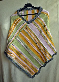 Der Poncho wird aus drei oder mehreren verschiedenen Farben gearbeitet.