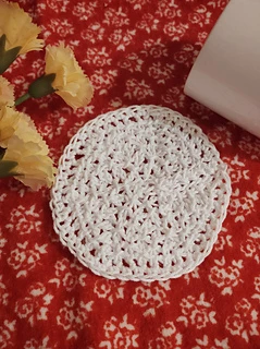 A quick coaster to learn Tunisian Crochet in the round using short row technique. The pattern uses Tunisian Simple Stitch and Tunisian Purl Stitch alternately to create a nice texture. The coaster is made in continuous sections. The last and first sections are seamed to create the circle and edged with a round of single crochet to even out the circle.