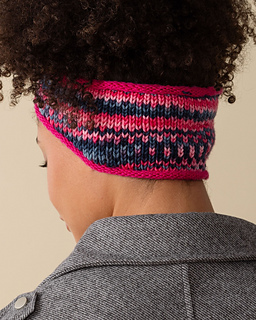 Headband is worked in rounds from bottom up with back shaped by short rows.