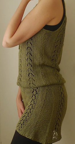 Note from Raveller: Pattern calls for 5 oz. of yarn, no yardage specified, an approximation would be around 600 yards. No pattern was given for the tension square, but I’d do a square in stockinette for this garment.