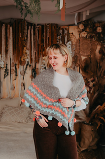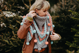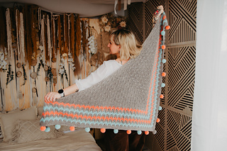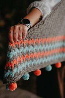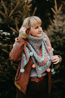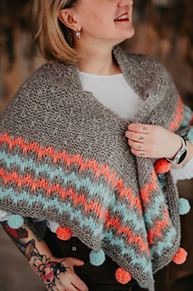Wrap yourself in a cozy embrace with the Snugglebug shawl! This delightful triangular design features a garter body with playful slipped stitches and vibrant slip-stitch patterning ideal for a splash of color. Adorned with charming, colorful pompoms along the edge, Snugglebug is a whimsical touch to any wardrobe, perfect for adding a dash of cheer to your day.