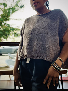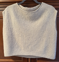 This oversized top combines modern minimalist look with beautiful details. The curved hem and cropped length add a flattering silhouette to this versatile piece that can be worn as a slipover over a shirt or by itself as a summer top.