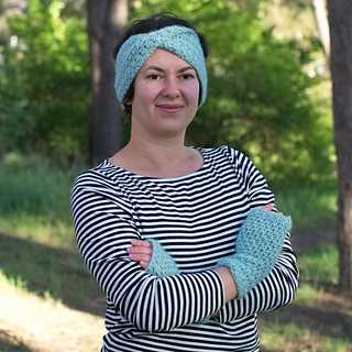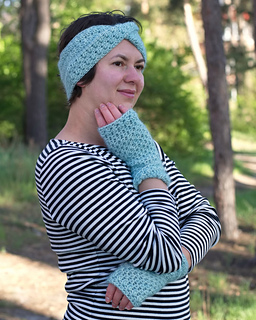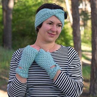 Quick and fun: a set of twisted ear warmer and fingerless mittens with twisted cuffs. A crochet project for those who want to achieve a beautiful result in a short amount of time and enjoy a relaxing crafting experience — whether in the evening after work or on the go.