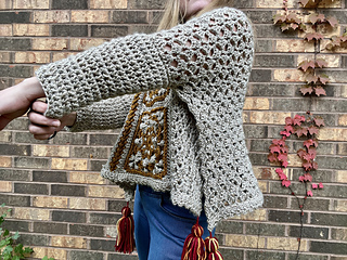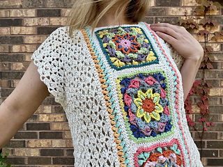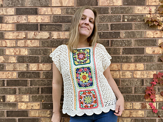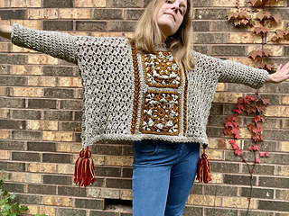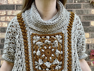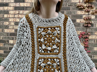 This crochet pattern gives you all the options: it can be a tee, a poncho, or a sweater. It’s made-to-measure and can be any size with any yarn. Each part is a stitch adventure from the dimensional squares, to the lace sides, to the snuggly sleeves.