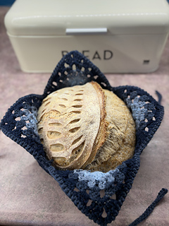 Use a worsted weight dishcloth cotton in four colours. Cotton is an ideal choice because it’s washable, economical and it won’t shed little fuzzies on your loaves.
