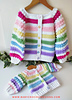 This cute cardigan is made from the top down, then joined to make the sleeves and button bands. It is made using a simple half double crochet stitch and a puff stitch for the sleeves. It is quick and easy to work up, it can be made in one or many colours. Each size is written separately, with colour change recommendations for the rainbow effect on each size. See the size chart for yarn amounts