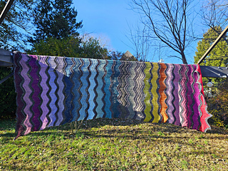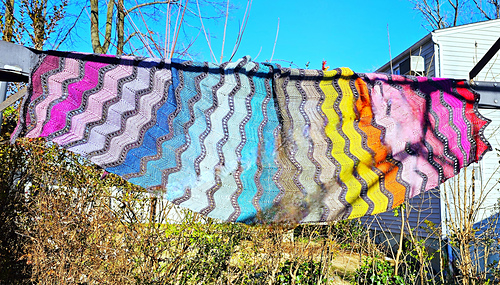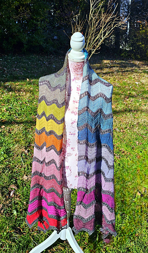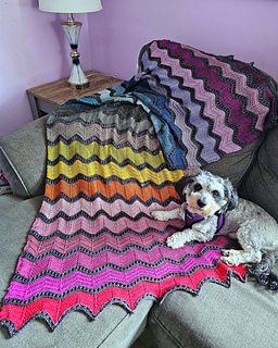Each panel is a different color setarated by one main color creating a stunning wrap or blanket. There are 6 different panels that are repeated 4 times. I have included a row by row written color coded that will tell you when to change colors.
