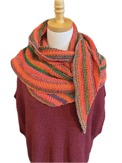 The STANFORD SHAWL begins as a structured, squared triangle before evolving into a graceful crescent -- designed to rest comfortably on your shoulders while offering endless styling possibilities. Knit with two yarns -- a self-striping colorway paired with a complementary semisolid -- its alternating bands unfold into an unexpected spectrum of color. A simple slip-stitch technique introduces a refined touch of texture. The result is a piece as enjoyable to knit as it is to wear.