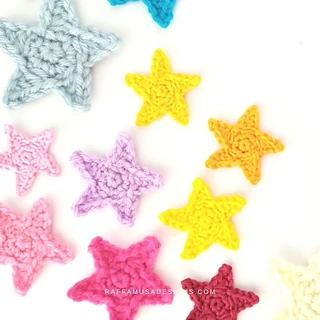This star applique works up literally in 2 minutes, and it is a great way to use up some of your scrap yarn.