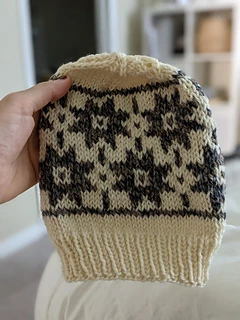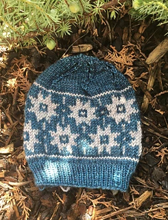 Starflake beanie is a stranded colour-work design and the pattern is written for a regular beanie and a slouchy hat.