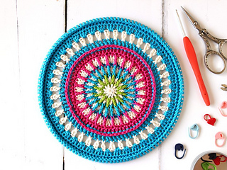 You will also need 3 x 20cm rings to finish the mandalas. We make the mandalas using a 3mm crochet hook.