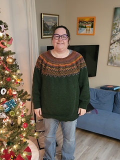Height of yoke (from below neckband to underarm): 9(9 ¼, 9 ½, 9 ½, 9 ¾, 10, 10 ¼, 10 ½)”, 23 (23.5, 24, 24, 25, 25.5, 26, 26.5) cm - customizable