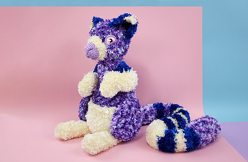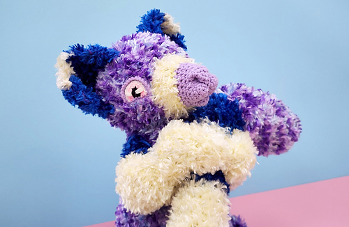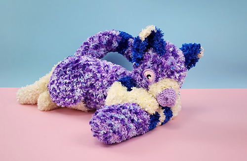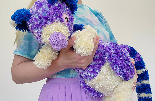 Crocheting and sewing with fur yarn might be more challenging than regular yarn, but the advantage is that fur hides mistakes very well, so perfection isn’t vital. Fur also works up fast due to its bulk, making quick work of large amigurumi like this one.