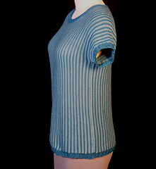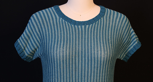 One of the benefits of knitting a sideways sweater is the possibility of vertical stripes. This Dotterel sweater showcases this technique beautifully by alternating two colors every other row in simple stockinette throughout. It’s created with minimal shaping—just some decreases at the shoulders and sleeves. And as with most of my knitting designs, no seaming with a tapestry needle is needed. The sweater has a fun construction that will keep you interested and moving along each step of the way.