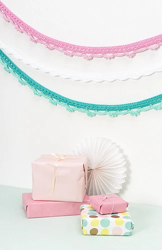 The Dutch crochet pattern for the Summer Garlands was published in Aan de Haak 27 and is available on Hobbyou.nl. The German pattern for the Pastellige Girlanden was published in Häkeln Das MaschenMagazin nr. 24.