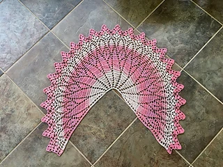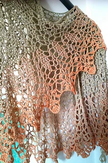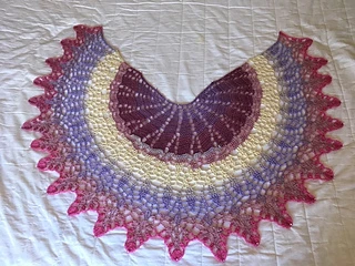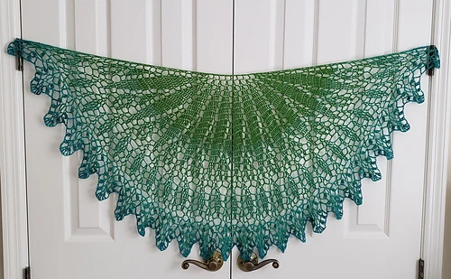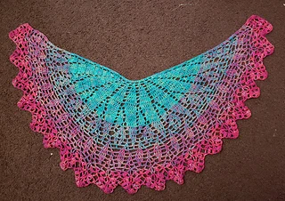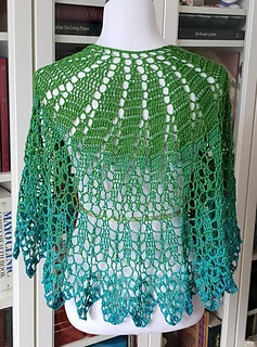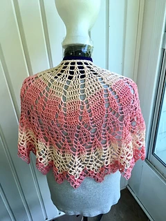 Summerland is a generous half circle shawl that is crocheted from the top down in a constantly evolving lace pattern. You’ll need 529 yards of DK weight yarn and a size H crochet hook. Finished size 44” neckline x 18” deep before blocking and 50.5” neckline x 21” deep at center back after blocking. Use any weight of yarn for this project by changing the hook size to suit the yarn.
