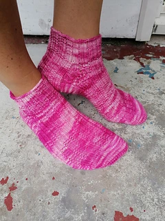 Sunday Reel is a sock pattern worked toe-up. The socks are mostly simple and neat ribbing but feature a special and fun gusset pattern. The instructions are written for magic loop technique on a long circular needle but you can easily work them on dpns.