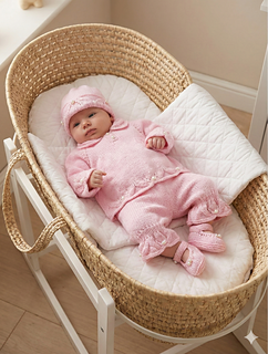 This beautiful angel set is easy to knit. It’s knitted from the bottom up and can be embellished with pearl beads if required.