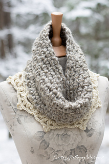 110, 130, 150 yards #4 worsted weight yarn in “Off-White” or color of your choice for lace trim.