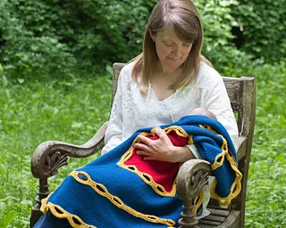 This blanket pattern brings out the kid in everyone. Knit in bright colors, this blanket evokes superhero costumes and powers. I imagine it will make an excellent cape as well as a mask! Knit in more subtle colors, the blanket becomes a treasured lovey to be snuggled. Is there anything better than being able to wind little fingers through gaps in fabric? Worked from the center out, the pattern is easy to memorize and fun to knit.