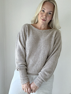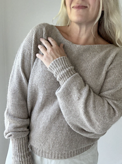 Sample knitted with: 3 (3, 3, 4, 4) (4, 5, 5, 5) skeins of Ruukin Kehräämö Alpaca silk linen yarn (350 m / 380 yds / 100g, alpaca, silk, linen) in colorway Beige.