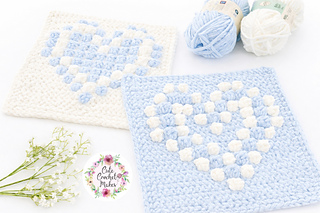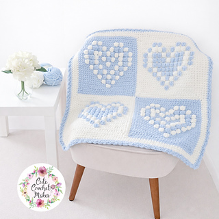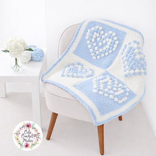 I made this blanket to go with my Sweetheart cushion. The blanket is made up of 2 different type bobble heart designs. You can made the blanket larger by adding more squares.