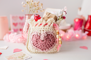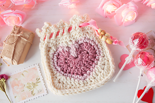 This darling crochet heart pouch pattern is a language of love- stuffed with little sweet treats, to little love notes, to memories and momentos. A clever slanted eyelet round is worked around the top, giving a whimsical candied finish, and allowing a simple cinching to close the pouch. Adorn with jute, beads, and ribbons to make it something special from you. The pattern starts with a heart motif, and then turns into a curved square. Both sides are fastened together creating a beautiful knit-like binding around the sides. Simple stitches are used, such as the sc, hdc and dc. What will you put in your little sweetheart pouch?