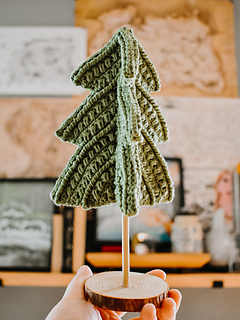 This Tabletop Evergreen Crochet Pattern is a quick and rewarding DIY project perfect for adding handmade holiday decor to your home. Designed with clear instructions, this downloadable PDF shows you how to create a beautiful crocheted Christmas tree in two sizes! One mounted on a wooden base and one that stands on its own. It’s a wonderful pattern for cozy winter decorating, craft fairs, gift-giving, or adding a touch of woodland style to your mantel, shelf, or entryway display.