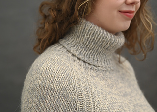 Talvinen poolo on väljähkö, reilunpituinen malli, jossa on kaksin kerroin taitettu kierrejoustin poolokaulus. Raglaneissa on 5 s kierrejoustinta, samoin helma ja hihansuut sekä etu- ja takakappaleen sivut ovat kierrejoustinta. Muuten poolopusero on sileää oikeaa neuletta. Puseroon on kaavoitettu väljyys n. 6 cm. Ohjeessa on runsaasti kokoja. Ohjeessa on versiot sekä alhaalta ylös että ylhäältä alas neuloen, joten voit valita sen neulomistavan, mikä sinulle tuntuu mieluisalta. Ylhäältä alas neuloessa voit sovittaa neuletta työn edetessä ja neuloa hihojen ja helman pituudet omien mittojen mukaan.