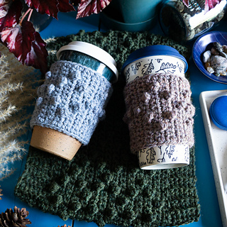 The weather is cooling off here and I’m ready for all the warm drinks! The only things that makes me happier than a cozy drink on a cool morning is a cute cup and cozy to drink if out of! The Popcorn Stitch Cozy helps you learn and practice the popcorn stitch and keeps your warm drinks adorable! Whether you like coffee, tea or hot cider, the Popcorn Stitch Cozy is the perfect hot drink accessory!