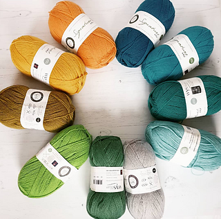 For this project I used fingering weight yarn with 3.25mm needles, however no yarn recommendations are given here - the choice of yarn/needles used is entirely up to the knitter and the type of year-long project they wish to create.