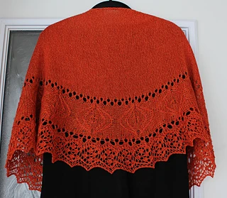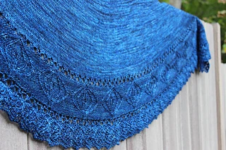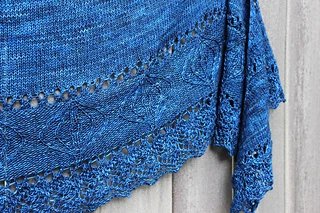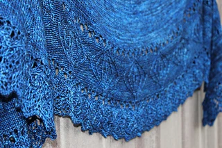 A lovely blend of simple and elegant, this crescent shaped shawl blends the simplicity of a stockinette body with eye catching lace and cable designs. The shawl is worked from the top down until the lace edging. At that point, the edging is knit on from side to side. There is an option to bead this shawl as well!