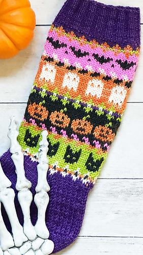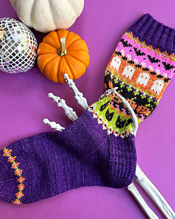 Meet The Boo Crew Socks—the spookiest party your feet will ever attend. These cheeky little socks are decked out with bats, ghosts, jack-o’-lanterns, and cats, because who says Halloween décor should stop at your front porch? Worked up in fingering weight yarn with playful pops of colorwork, they’re equal parts festive and fabulous. Whether you’re strutting through pumpkin patches or just haunting your couch with a mug of cider, the Boo Crew has your back (or, well… your toes). Knit them loud, knit them proud, and let your feet do the trick-or-treating for you.