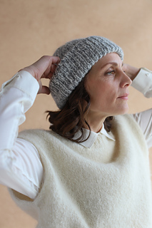 Worked in the round from bottom―up, holding one strand of Tage and Tynd together. Cap is started with a tubular cast on and continues in 1x1 ribbing. Decreases are worked to shape the crown. Hat comes in one size with a