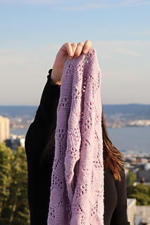 The Haze Shawl is a long scarf with tapered ends that features beautiful but modern lace stitches, with the increases worked seamlessly into the lace repeats. The repeat is more simple than it looks - you will have it memorized in no time! Lined with a small textured moss stitch to reduce curling and a stunning icord border, this piece is eye-catching and elevates every outfit.