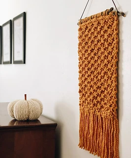 The Madeline Wall Hanging is a simple decor piece, perfect for any home. This design is made with super bulky yarn and large needles, perfect for beginners! It can be made in any size and is perfect for your home or a gift!
