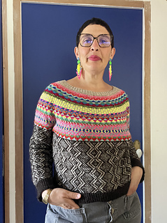 An unusual and modern sweater, with a wink to traditional Fair Isle knitwear.