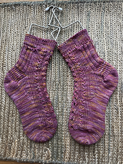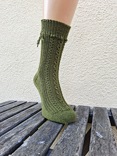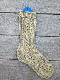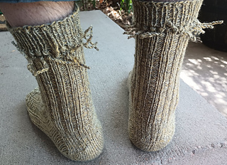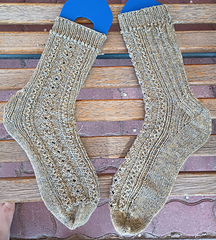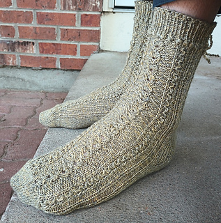 Pattern is more for the intermediate knitter as there are a lot of needed skills; toe up, cables, knit below, nupps, tendrils, textured stitches, twisted stitches, and ribbing on sides of heel for increases.
