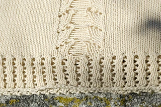 Techniques: Knitting in the round on circular needles, basic chart reading, basic lace stitches.