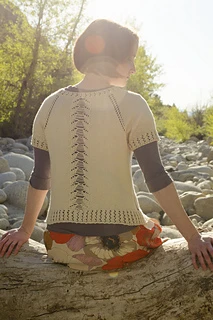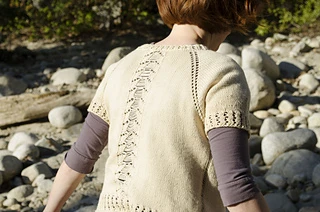 Have you been dying to try dropped stitches but a little intimidated by them? This is the perfect pattern for a beginner to the technique! Only 3 stitches are dropped but look fabulously complicated when complete. Worked from the top down, this pattern uses basic sweater techniques incorporating basic lace techniques along the way. It’s perfect for that intermediate knitter looking to expand their horizons! With minimal shaping, this pattern is straightforward to knit but deliciously satisfying when you get to drop the stitches! It’s easy to wear and layer if knit in cotton and silk, and warm and cozy if knit in an animal fiber. It is also completely reversible! Worn front to back, on the knit or purl side, you really get the most out of this pullover.
