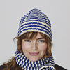 The Thekla Hat is knitted in the round from the bottom up in stripes. First, you will work 2x2 rib with stripes of 3 rounds in each color, then switch to 6x6 rib with stripes of 2 rounds in each color. At the transition between the 2x2 and 6x6 rib, you will turn your work and continue knitting in the round on what was previously the “wrong side.” Be sure to change colors on the side of the work facing away from you throughout. Finally, you will work decreases at the top of the hat. Then block the piece to the specified measurements to smooth the edges and even out the rib pattern.