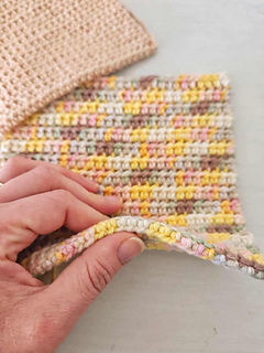 This thermal stitch potholder crochet pattern creates a thick double-layered fabric, which makes a great potholder. This double thick crochet hot pad pattern is made by working both into the stitch from the previous row, and the stitch one row below.