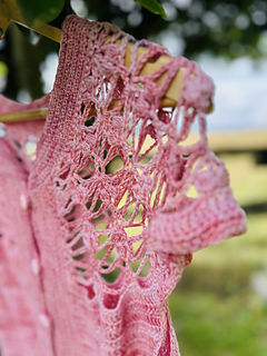 En pa de 10x10cm, aguja de 3mm, sin bloquear: 17 puntos y 10 vueltas