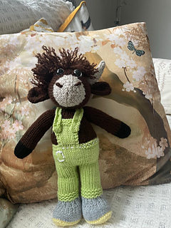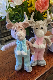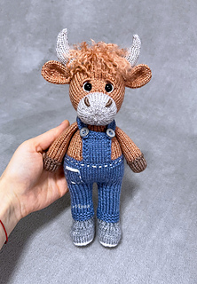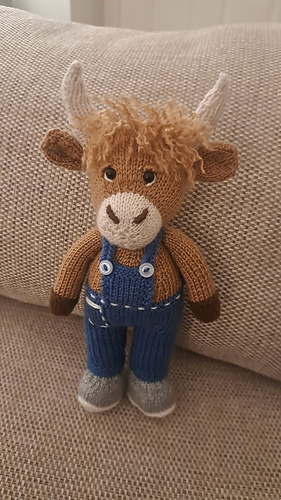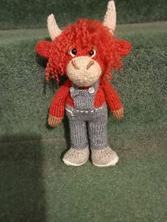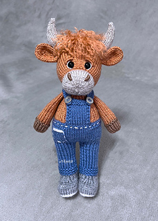 This is a knitting pattern for a stuffed toy highland cow called Torran. The toy is knitted on 2 needles and then sewn.