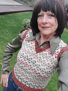 The tank is worked from the bottom up, with stranded colourwork on the body and steeks for the neck and arms. There’s contrasting ribbing to finish the edges, with an optional split hem and short-row shaping on the neckband and armholes.