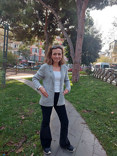 Any yarn matching the gauge. The cardigan should have a certain solidity to emphasize the character of a jacket. I would recommend to knit rather tightly and not to use a very smooth yarn.