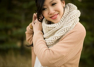Crochet this luxurious cowl with beautiful drape that you will adore wearing using bulky yarn! The stitches used resemble stockinette of knitting, giving a sophisticated and faux knit look. For the sample pictured, I used 3 skeins of “Woolspun” in the colourway “Linen”!