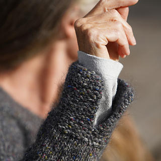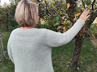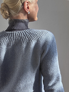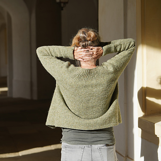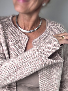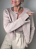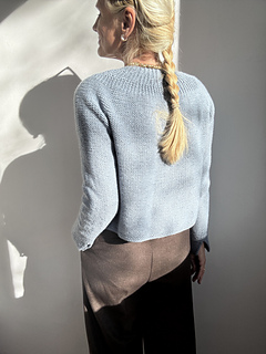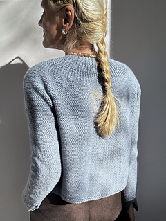 Sample 1 shown in size M with 4cm/1.5” ease, 3 yarns held together for the heathered effect: click here to find out more details. When choosing your yarn, I recommend a material that forgives uneven stitches. Reverse stockinette can be a diva – 2 yarns held together or a blown yarn can smoothen the look. click here for the blue sample