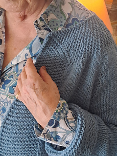 The Cardigan is knit seamlessly from the top down, all edges are equally nice on right side or wrong side, so you can reverse it and wear it from both sides.