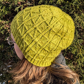 Gauge is important for this hat pattern to ensure a good fit. The sample shown has a circumference of 20.25” / 51.5 cm with approximately 1.25” / 3 cm of negative ease around the brim. Please choose a gauge and hat size that has 0-2” of negative ease for a snug fit.